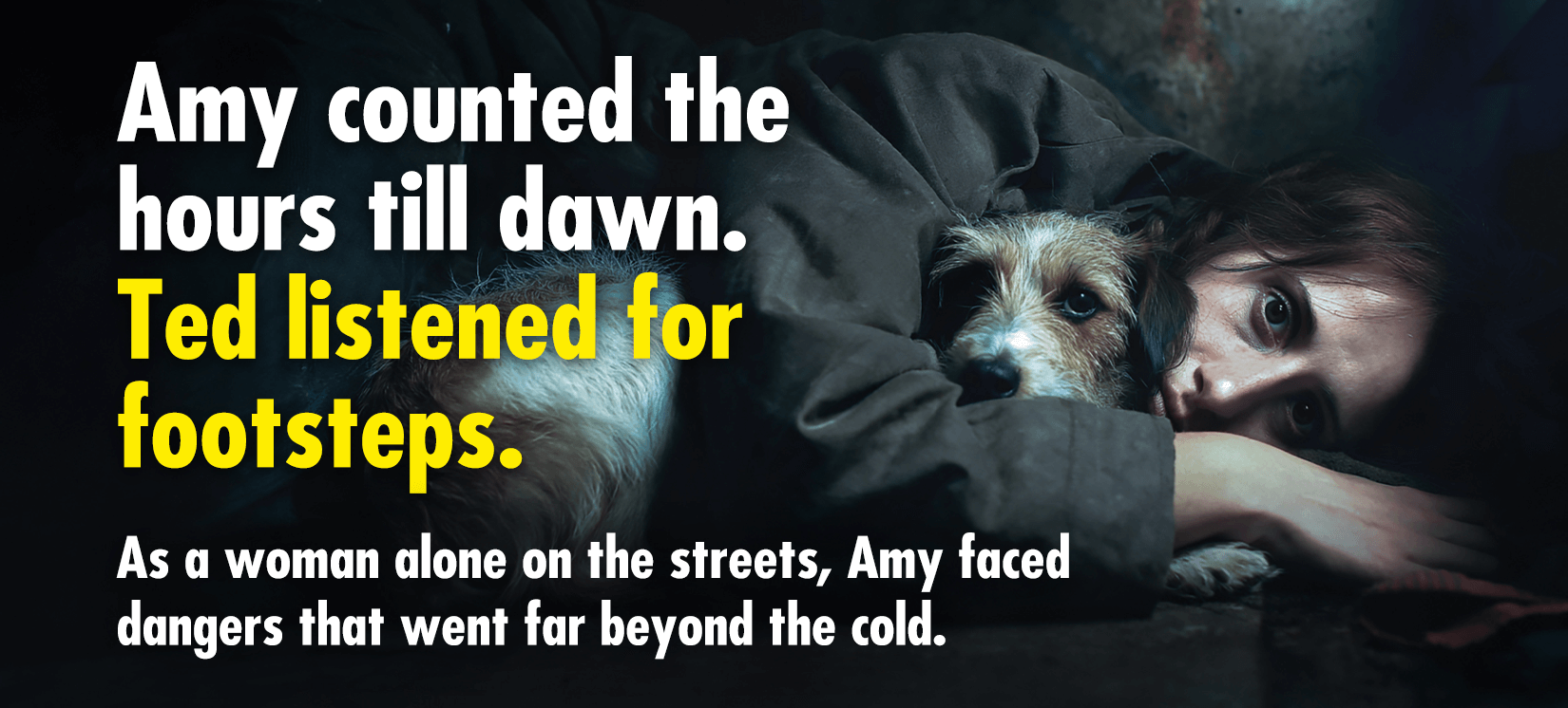 Amy came to us when she’d run out of options. With Ted beside her, she’d spent weeks trying to find somewhere safe to sleep. Doorways, hidden corners, places where nobody might find them.